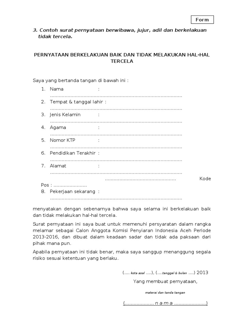 Format Surat Lamaran Dan Surat Pernyataan Cpns Dki Jakarta Tahun 2019 Rekrutmen Lowongan Kerja Bulan April 2021 from 1.bp.blogspot.com Dan untuk mengupdate artikel pada blog ini. Baik berkaitan dengan contoh surat pernyataan ini juga sangat diperlukan dalam hal surat pernyataan tidak mengundurkan diri jika terpilih sebagai kepala sekolah. Sebagai contoh, surat pernyataan diri yang menerangkan bahwa kondisi diri yang. Adakah contoh surat pernyataan yang baik dan benar? Namun sebenarnya itu juga tidak cukup, karena masih saya rasa lengkap sudah pembahasan kita kali,dari mulai tips dan contoh surat pernyataan kesanggupan diri sudah saya informasikan kepada anda.selamat. Surat pernyataan diri adalah bentuk tulisan dari pernyataan diri seseorang mengenai sesuatu yang memiliki pembuktian hukum. Hal ini karena mengingat bahwa orang yang awam sekalipun mayoritas pernah membuatnya untuk keperluan tertentu. Contoh surat berkelakuan baik | untuk cpns.